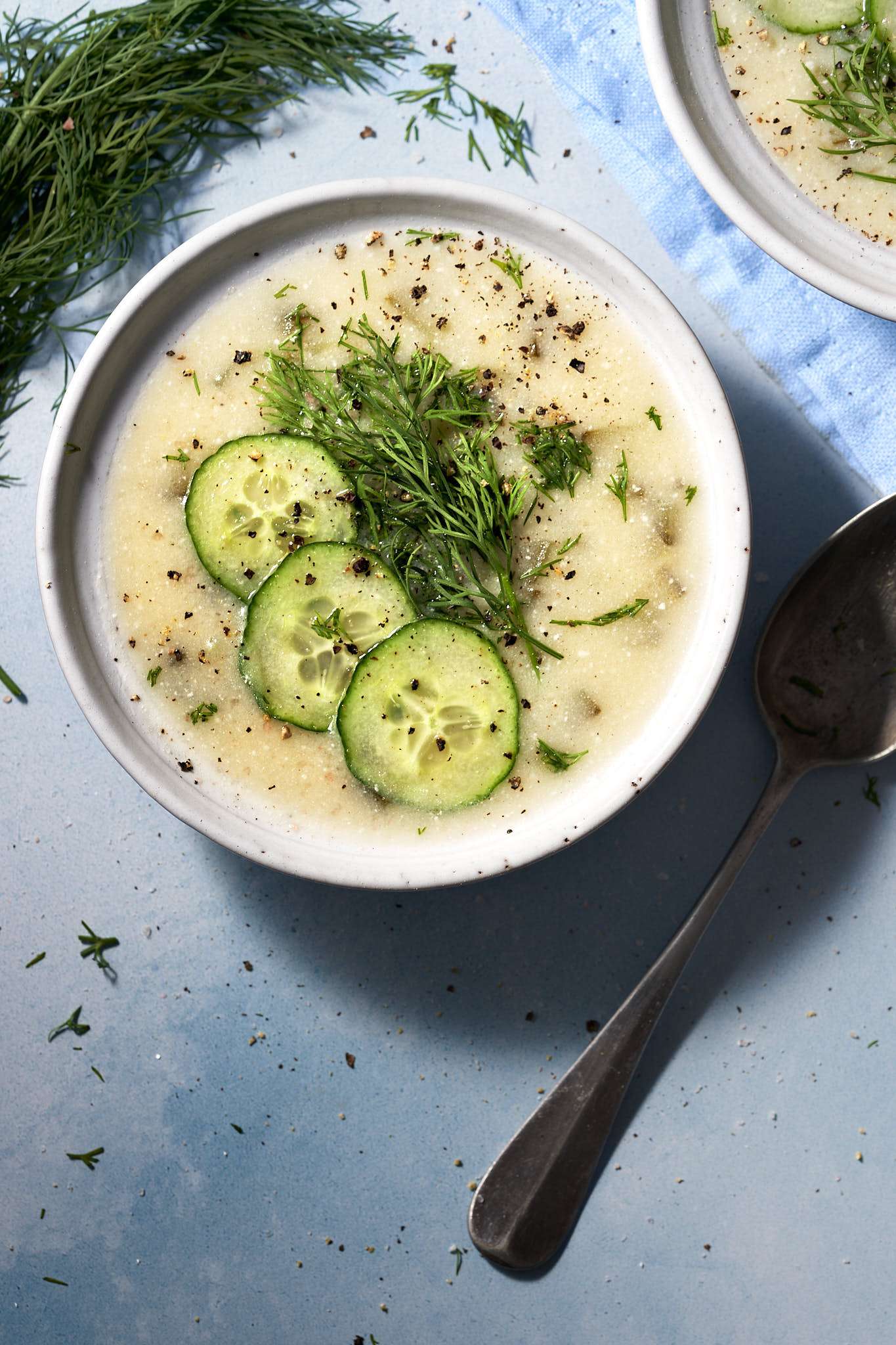 - Stir through the dill and then serve immediately or allow to cool and serve as a cold soup.