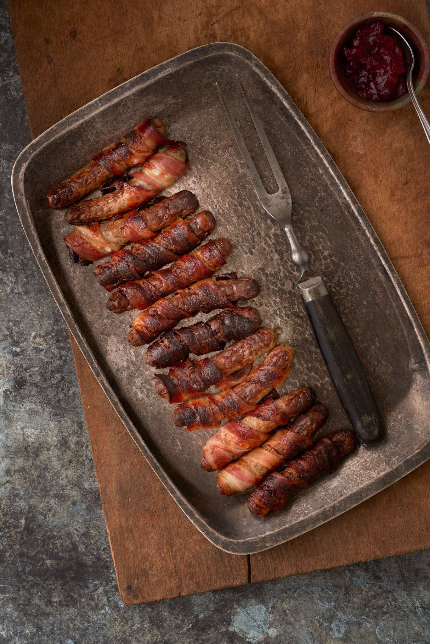 I always wrap the little pigs in their bacon blankets on Christmas Eve, and sometimes even cook them the day before too, especially if oven space is going to be at a premium on Christmas Day. They reheat really well, and in the unlikely event there are any left, they are great for breakfast on Boxing Day.